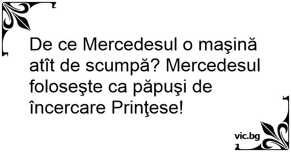 De ce Mercedesul o maşină atît de scumpă? Mercedesul foloseşte ca păpuşi de încercare Prinţese!
