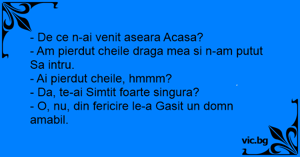 - Am pierdut cheile draga mea si n-am putut Sa intru.