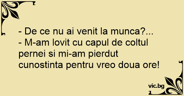 - M-am lovit cu capul de coltul pernei si mi-am pierdut cunostinta pentru vreo doua ore!