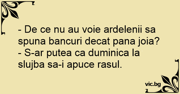 - De ce nu au voie ardelenii sa spuna bancuri decat pana joia?