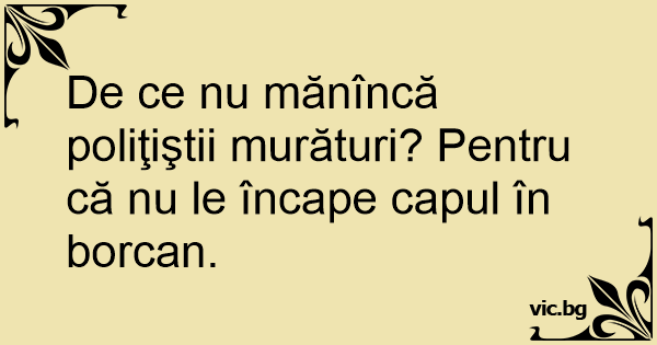 De ce nu mănîncă poliţiştii murături? Pentru că nu le încape capul în borcan.