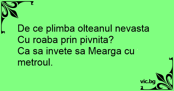 De ce plimba olteanul nevasta Cu roaba prin pivnita?