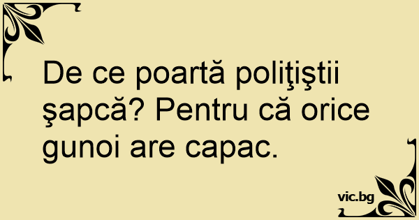 De ce poartă poliţiştii şapcă? Pentru că orice gunoi are capac.