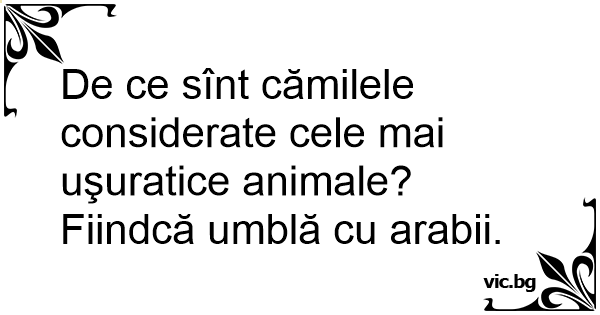 De ce sînt cămilele considerate cele mai uşuratice animale? Fiindcă umblă cu arabii.
