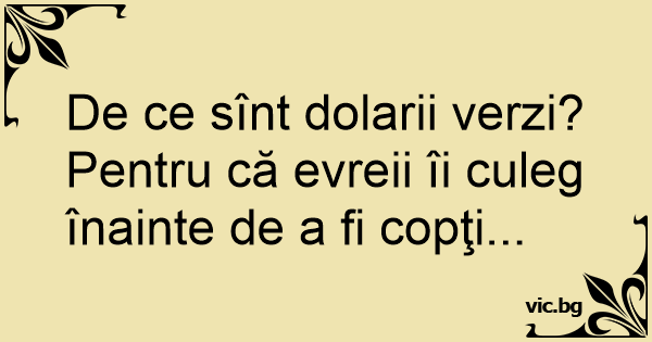 De ce sînt dolarii verzi? Pentru că evreii îi culeg înainte de a fi copţi...