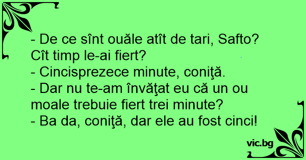 - De ce sînt ouăle atît de tari, Safto? Cît timp le-ai fiert?