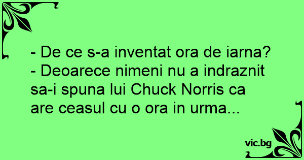 - Deoarece nimeni nu a indraznit sa-i spuna lui Chuck Norris ca are ceasul cu o ora in urma...