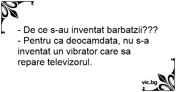 - De ce s-au inventat barbatzii???<br />- Pentru ca deocamdata, nu s-a inventat un viвrатоr care sa repare televizorul.