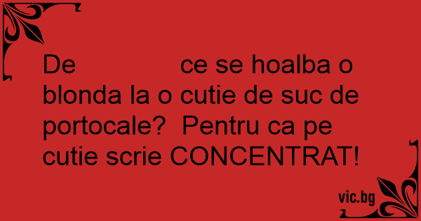 De ce se hoalba o blonda la o cutie de suc de portocale? Pentru ca pe cutie scrie CONCENTRAT!