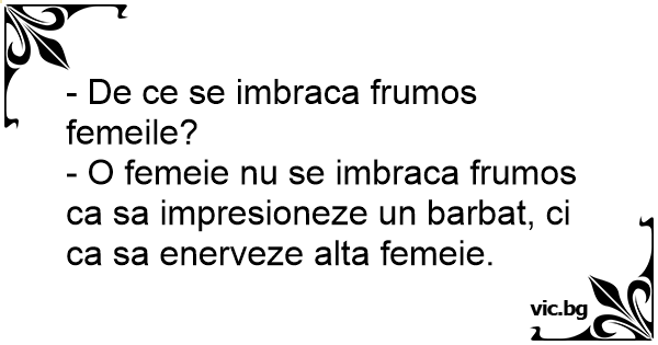 - O femeie nu se imbraca frumos ca sa impresioneze un barbat, ci ca sa enerveze alta femeie.