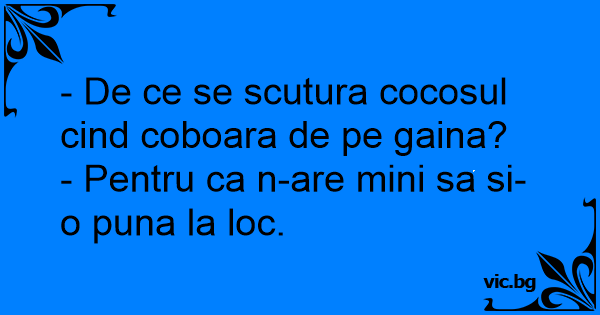 - De ce se scutura cocosul cind coboara de pe gaina?