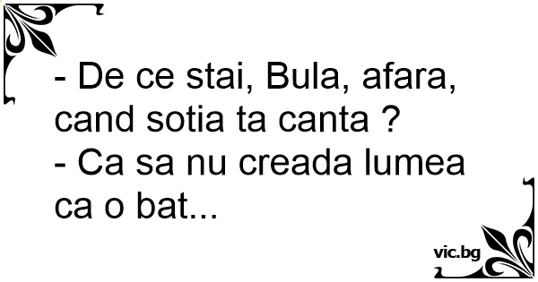 - De ce stai, Bula, afara, cand sotia ta canta ?