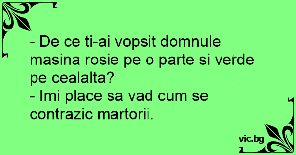 - De ce ti-ai vopsit domnule masina rosie pe o parte si verde pe cealalta?