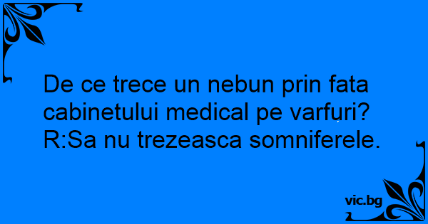 De ce trece un nebun prin fata cabinetului medical pe varfuri?