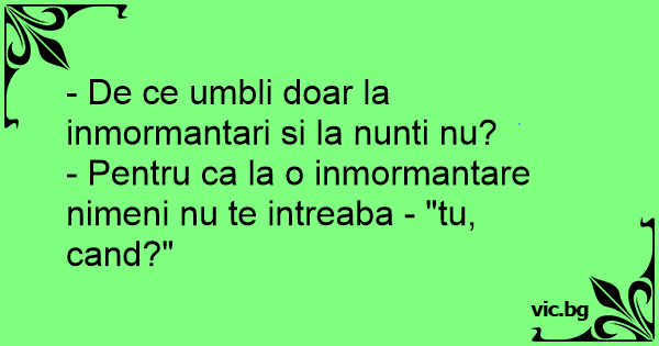 - Pentru ca la o inmormantare nimeni nu te intreaba - "tu, cand?"