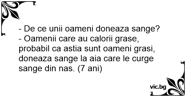 - Oamenii care au calorii grase, probabil ca astia sunt oameni grasi, doneaza sange la aia care le curge sange din nas. (7 ani)
