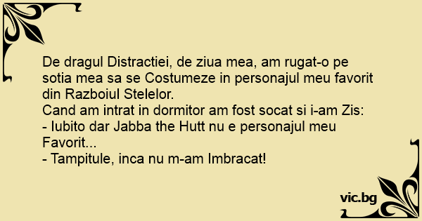- Iubito dar Jabba the Hutt nu e personajul meu Favorit...