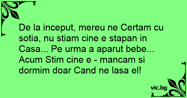 De la inceput, mereu ne Certam cu sotia, nu stiam cine e stapan in Casa... Pe urma a aparut bebe...