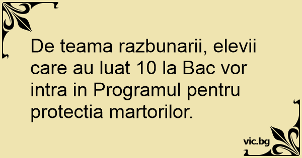 De teama razbunarii, elevii care au luat 10 la Bac vor intra in Programul pentru protectia martorilor.
