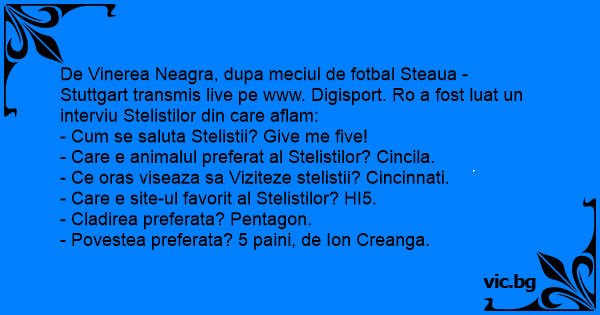 De Vinerea Neagra, dupa meciul de fotbal Steaua - Stuttgart transmis live pe www. Digisport. Ro a fost luat un interviu Stelistilor din care aflam: