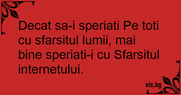 Decat sa-i speriati Pe toti cu sfarsitul lumii, mai bine speriati-i cu Sfarsitul internetului.