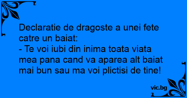 - Te voi iubi din inima toata viata mea pana cand va aparea alt baiat mai bun sau ma voi plictisi de tine!