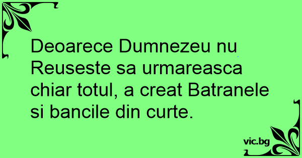 Deoarece Dumnezeu nu Reuseste sa urmareasca chiar totul, a creat Batranele si bancile din curte.
