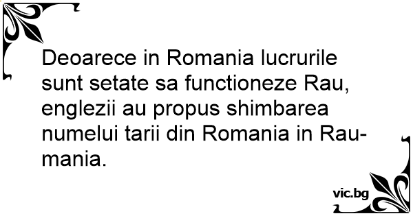 Deoarece in Romania lucrurile sunt setate sa functioneze Rau, englezii au propus shimbarea numelui tarii din Romania in Rau-mania.