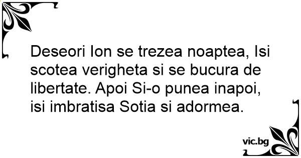 Deseori Ion se trezea noaptea, Isi scotea verigheta si se bucura de libertate. Apoi Si-o punea inapoi, isi imbratisa Sotia si adormea.