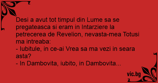Desi a avut tot timpul din Lume sa se pregateasca si eram in Intarziere la petrecerea de Revelion, nevasta-mea Totusi ma intreaba: