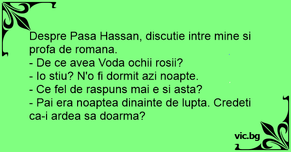Despre Pasa Hassan, discutie intre mine si profa de romana.