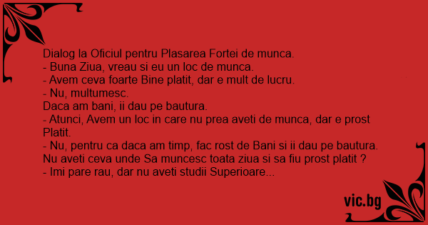 - Atunci, Avem un loc in care nu prea aveti de munca, dar e prost Platit.