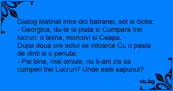 Dialog Matinal intre doi batranei, sot si Sotie: