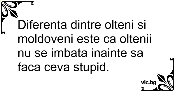 Diferenta dintre olteni si moldoveni este ca oltenii nu se imbata inainte sa faca ceva sтuрid.