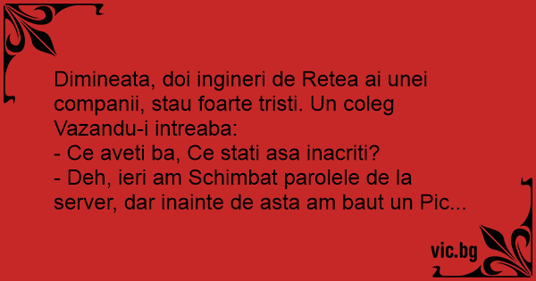 - Deh, ieri am Schimbat parolele de la server, dar inainte de asta am baut un Pic...