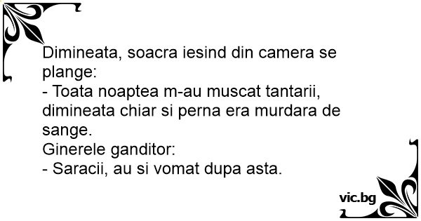 - Toata noaptea m-au muscat tantarii, dimineata chiar si perna era murdara de sange.