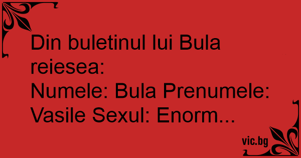 Numele: Bula Prenumele: Vasile Sexul: Enorm...