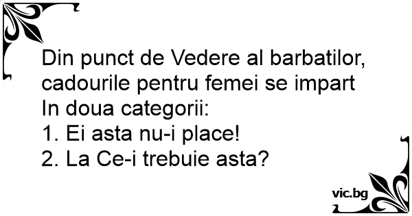 Din punct de Vedere al barbatilor, cadourile pentru femei se impart In doua categorii: