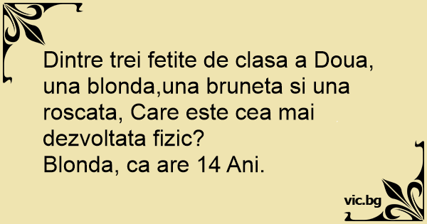 Dintre trei fetite de clasa a Doua, una blonda,una bruneta si una roscata, Care este cea mai dezvoltata fizic?