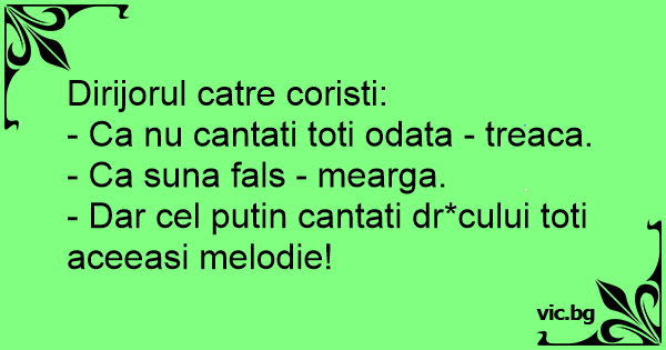 - Dar cel putin cantati dr*cului toti aceeasi melodie!