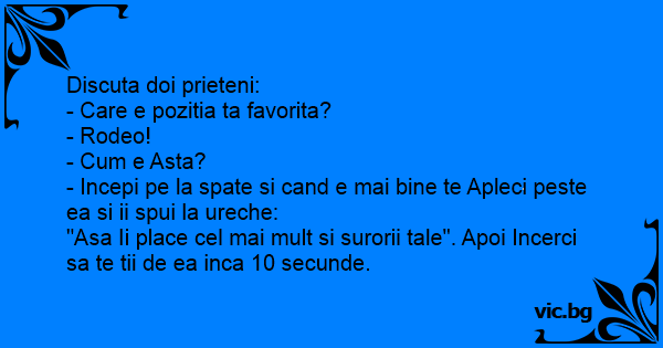 "Asa Ii place cel mai mult si surorii tale". Apoi Incerci sa te tii de ea inca 10 secunde.