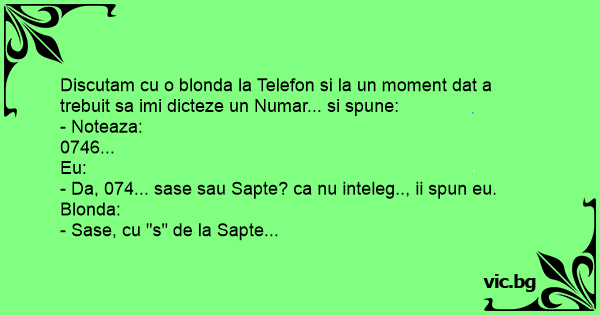 Discutam cu o blonda la Telefon si la un moment dat a trebuit sa imi dicteze un Numar... si spune:
