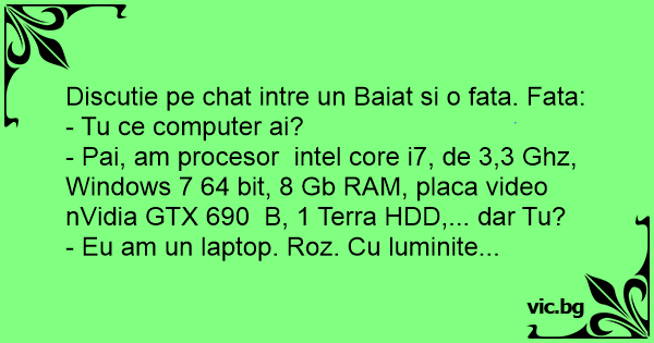 Discutie pe chat intre un Baiat si o fata. Fata: