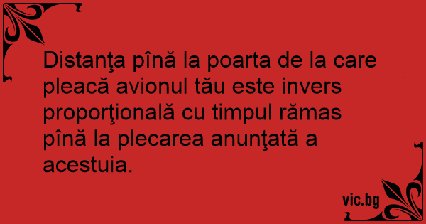Distanţa pînă la poarta de la care pleacă avionul tău este invers proporţională cu timpul rămas pînă la plecarea anunţată a acestuia.