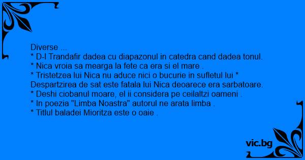 * Tristetzea lui Nica nu aduce nici o bucurie in sufletul lui * Despartzirea de sat este fatala lui Nica deoarece era sarbatoare.