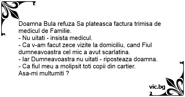Doamna Bula refuza Sa plateasca factura trimisa de medicul de Familie.