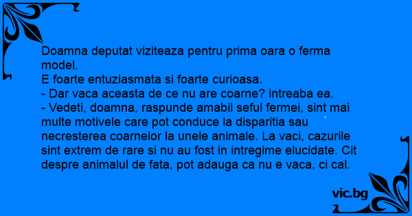 - Dar vаса aceasta de ce nu are coarne? intreaba ea.
