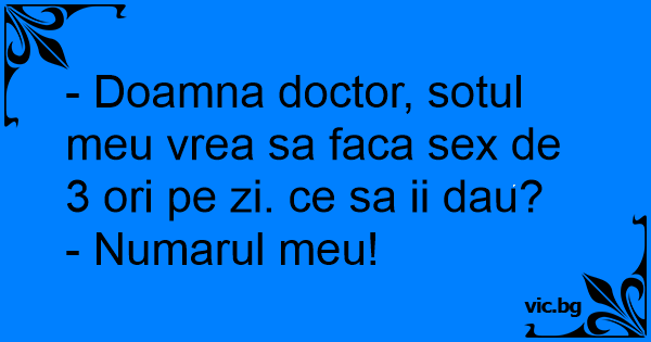 - Doamna doctor, sotul meu vrea sa faca sеx de 3 ori pe zi. ce sa ii dau?
