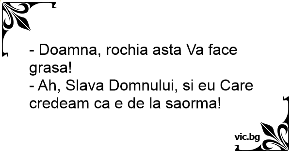 - Ah, Slava Domnului, si eu Care credeam ca e de la saorma!