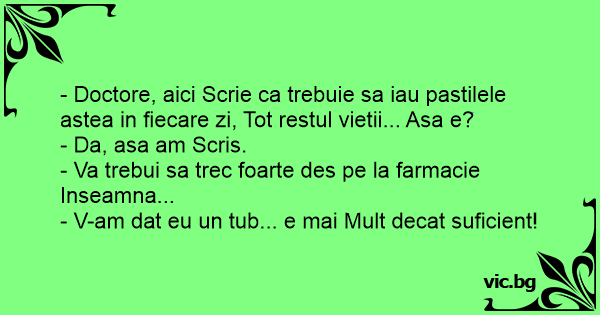 - Doctore, aici Scrie ca trebuie sa iau pastilele astea in fiecare zi, Tot restul vietii... Asa e?